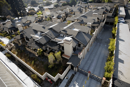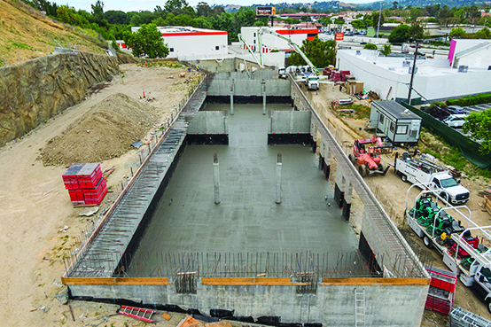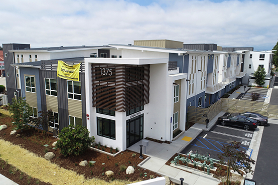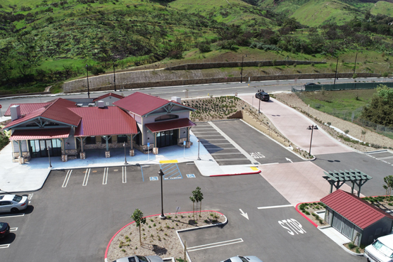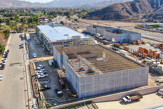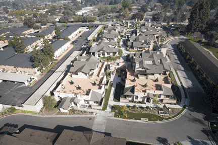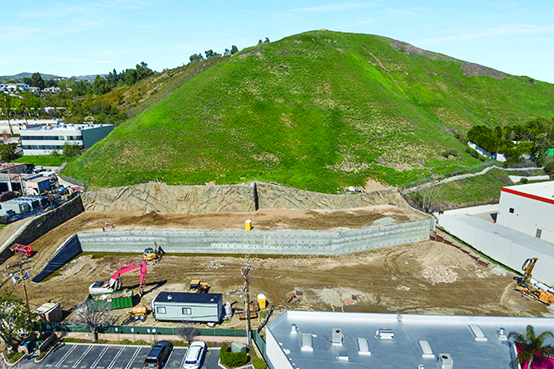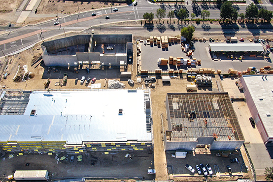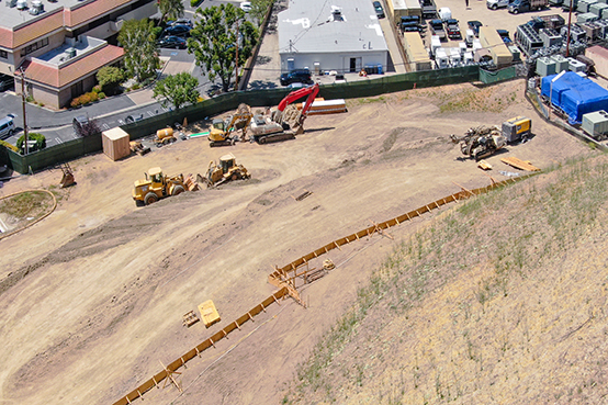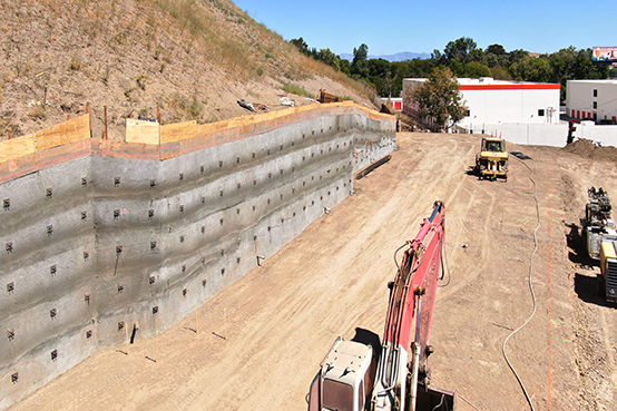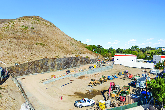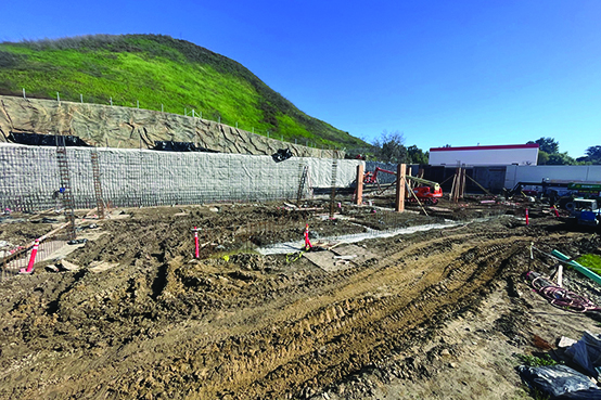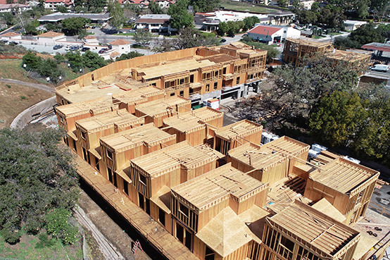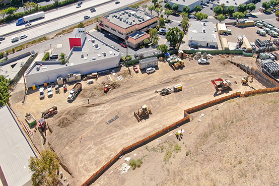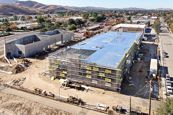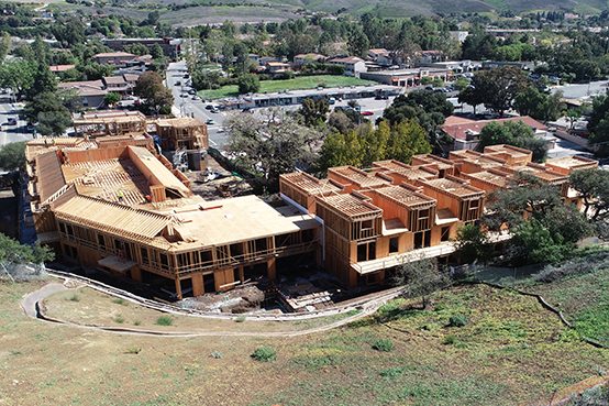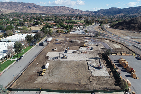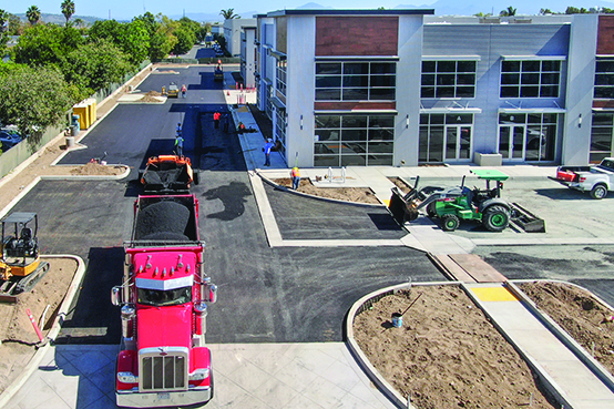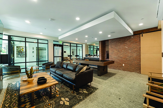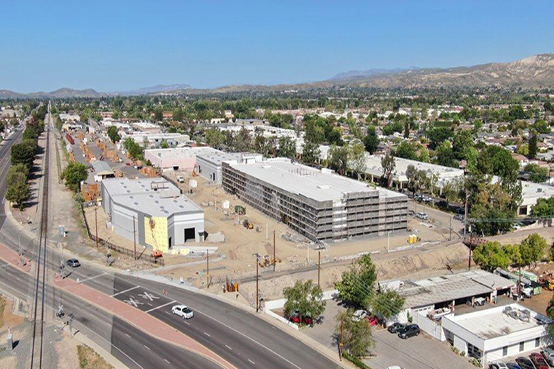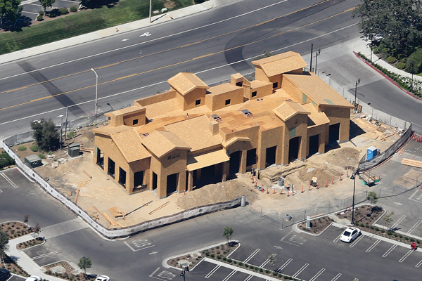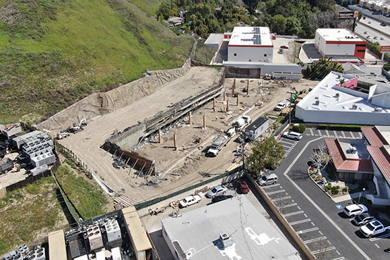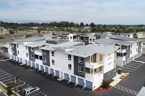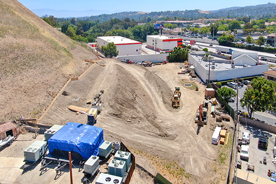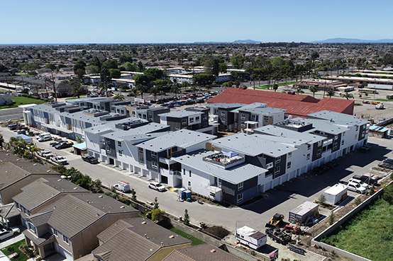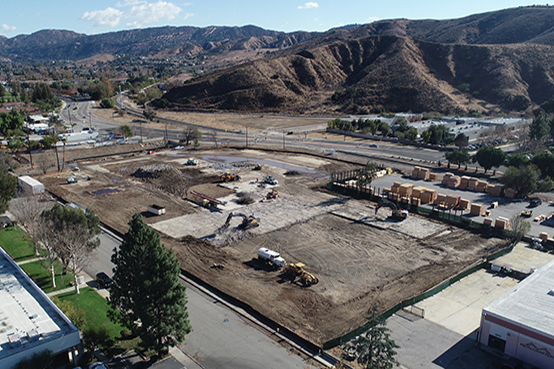 A mixed-use development on 2.7 acres, site includes commercial space and residential space. The 2 buildings, 3 stories, Building “A” at 50,790 sq.ft. and Building “B” at 6,976 sq.ft., 36 residential units include a podium deck, a club/gym, a BBQ and pool area. An exterior courtyard between the buildings with overhead string lights, fountains, and landscaping. 2 commercial restaurant spaces total of 5,823 sq.ft., Gross Floor Area is 59,298 sq.ft., Courtyard 3,501 sq.ft., and Parking Garage 21,883 sq.ft.. Site improvements include colored and textured soil nail walls, AC paving, colored concrete paving, pre-cast colored pavers, a wooden deck, and landscaping throughout to give the development a Mediterranean feel.