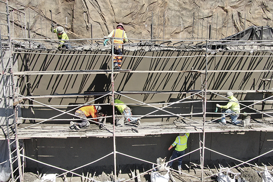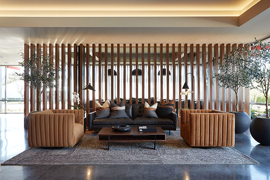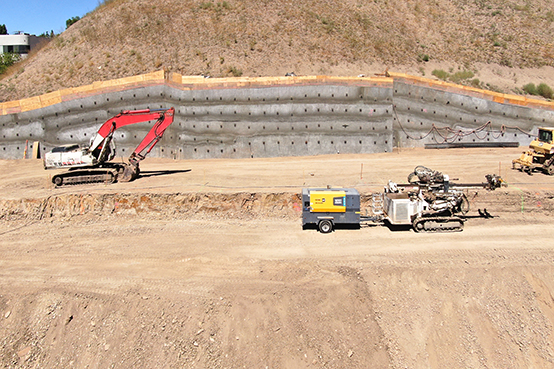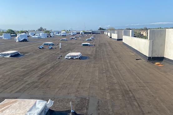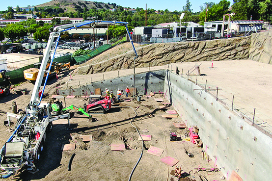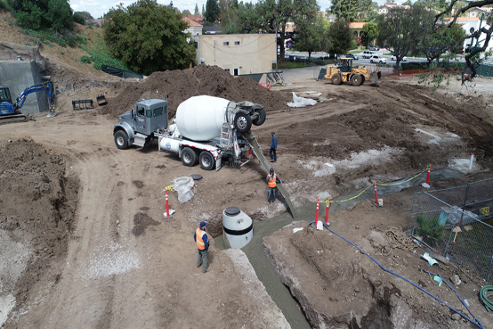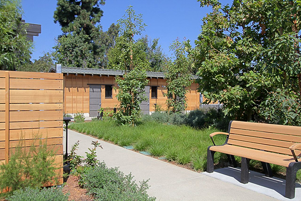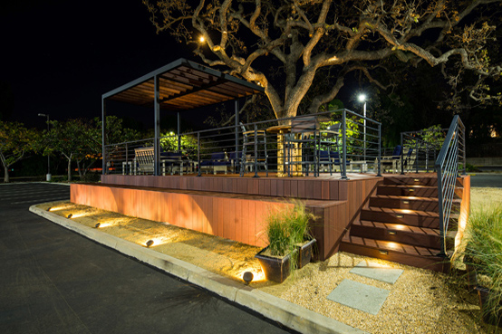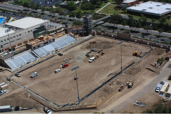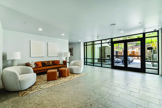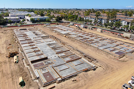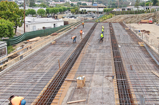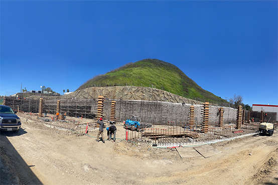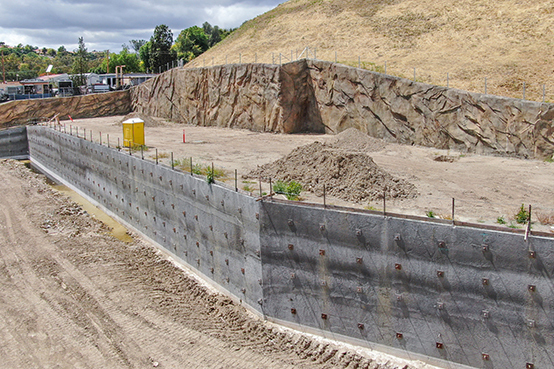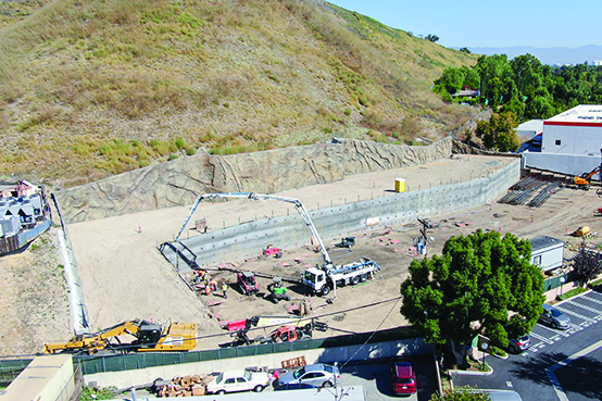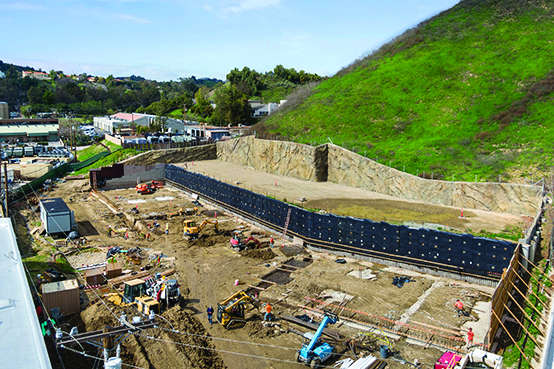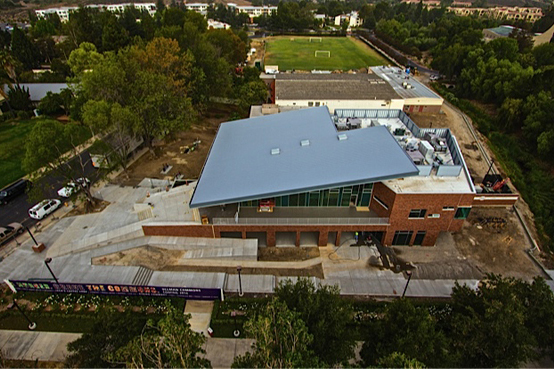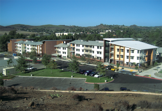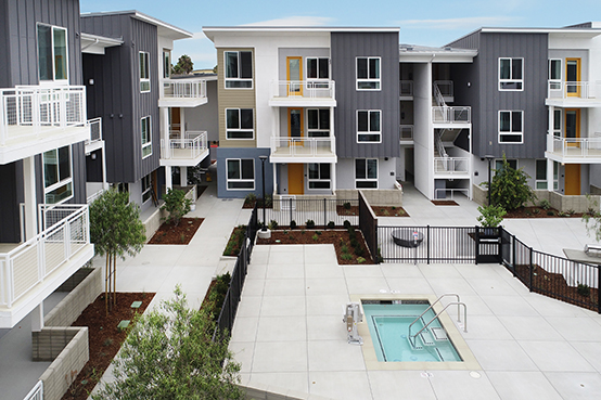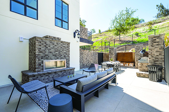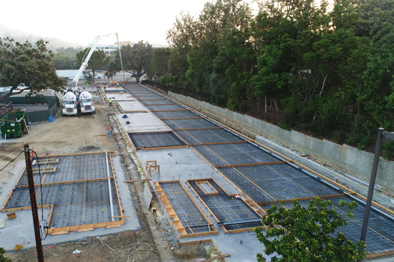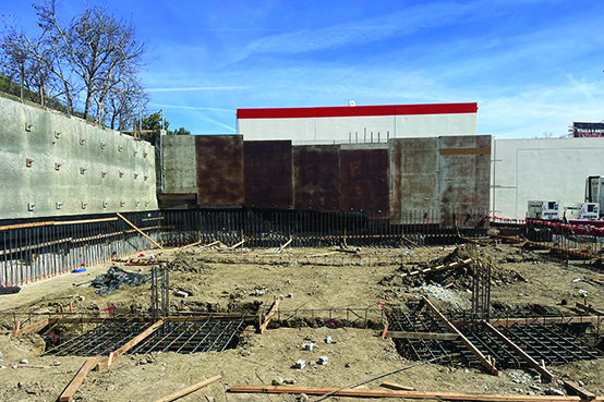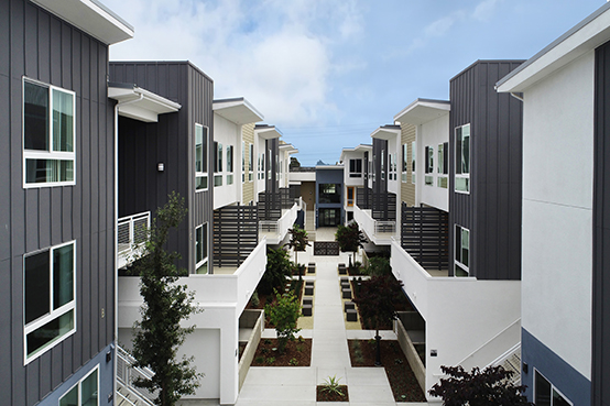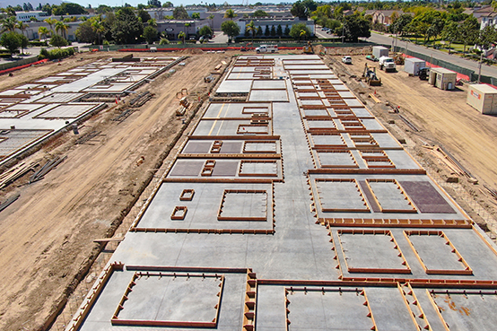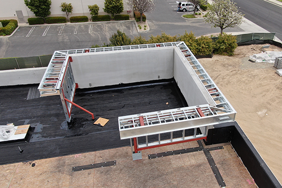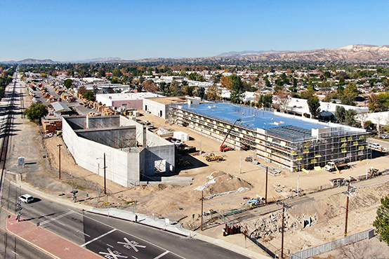 A mixed-use development on 2.7 acres, site includes commercial space and residential space. The 2 buildings, 3 stories, Building “A” at 50,790 sq.ft. and Building “B” at 6,976 sq.ft., 36 residential units include a podium deck, a club/gym, a BBQ and pool area. An exterior courtyard between the buildings with overhead string lights, fountains, and landscaping. 2 commercial restaurant spaces total of 5,823 sq.ft., Gross Floor Area is 59,298 sq.ft., Courtyard 3,501 sq.ft., and Parking Garage 21,883 sq.ft.. Site improvements include colored and textured soil nail walls, AC paving, colored concrete paving, pre-cast colored pavers, a wooden deck, and landscaping throughout to give the development a Mediterranean feel.
