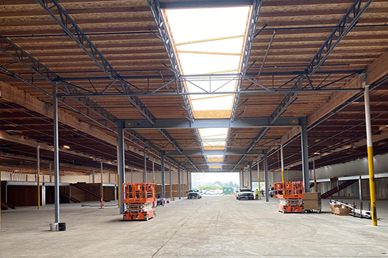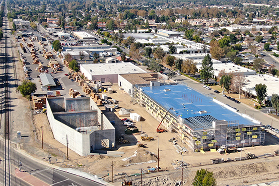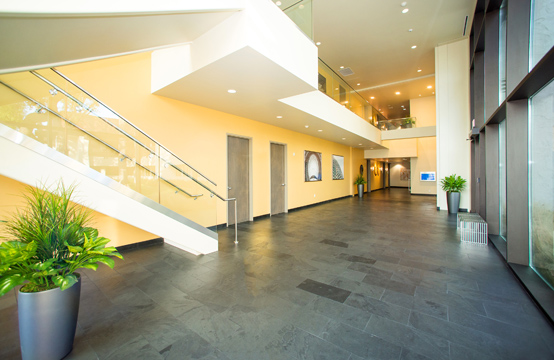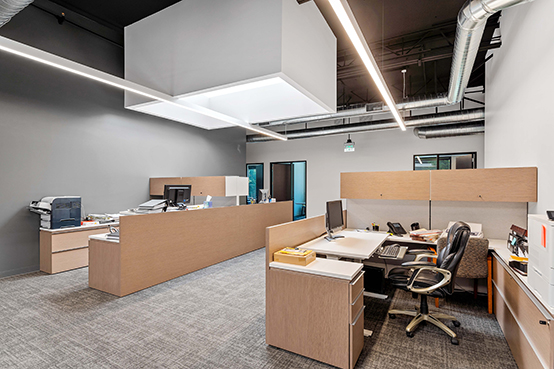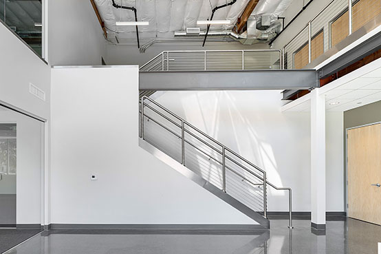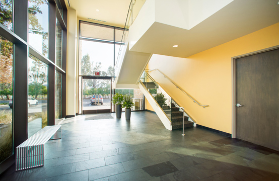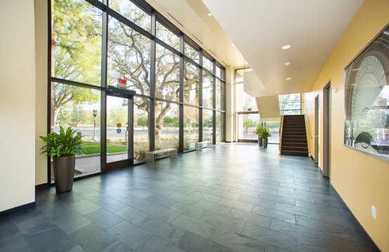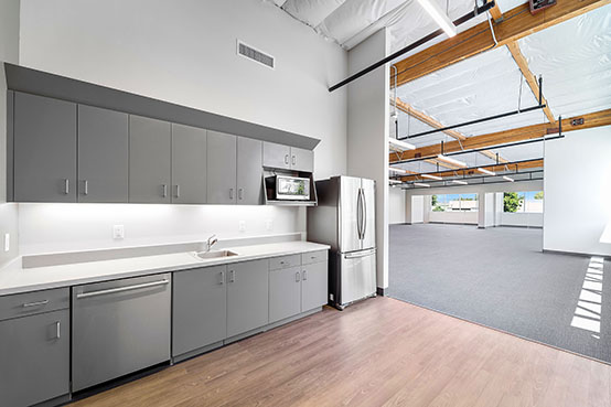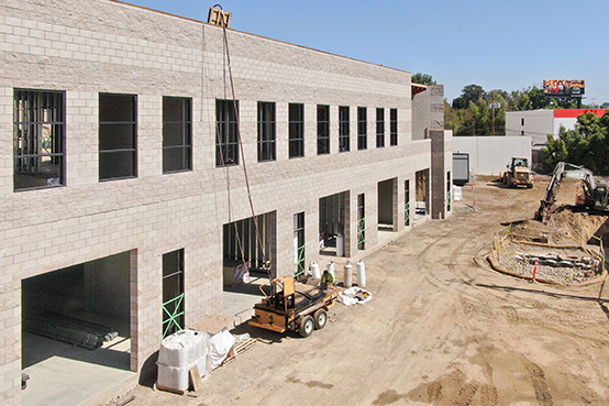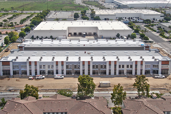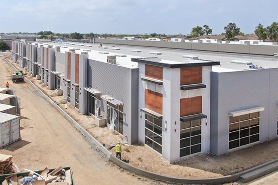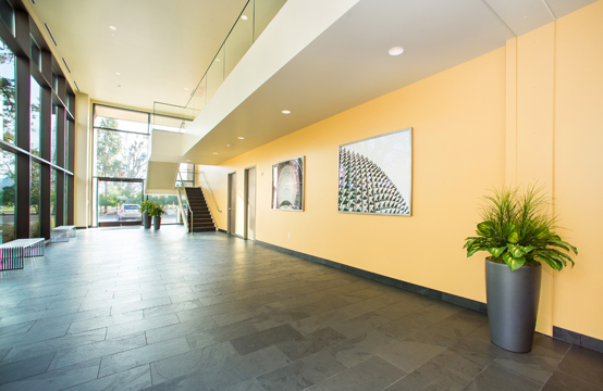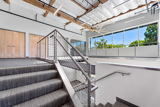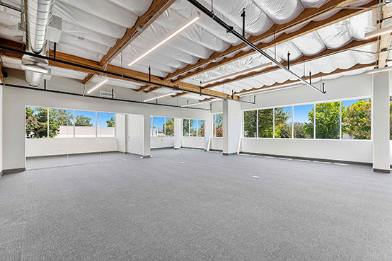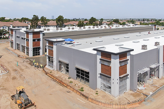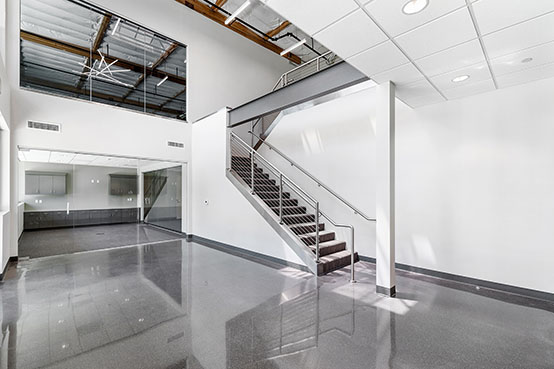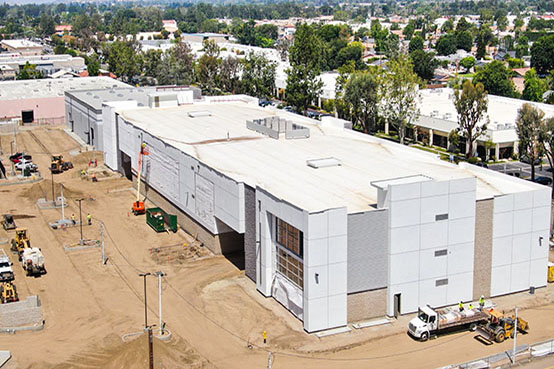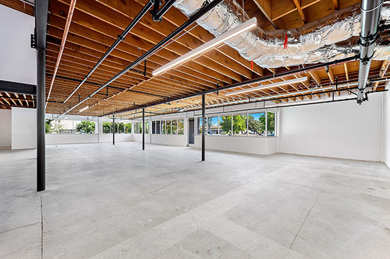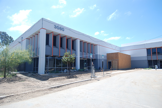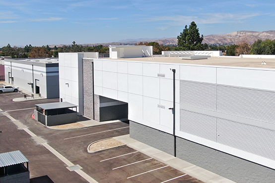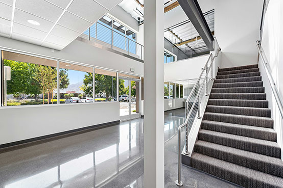Building façade makeover for an 85,314 sq. ft. 2-story concrete tilt-up building including new clear aluminum storefront glazing system, plaster, paint, installation of new steel canopy sunshades, and new low water landscape/irrigation system with concrete hardscape and AC paving throughout the site. Interior construction consists of 55,095 sq. ft. warehouse, 1st and 2nd floor office build-outs, 1st floor lobby remodel, concrete floor polishing in warehouse, installation of stainless steel stair handrails & railing, new 2nd floor office mezzanine, (2) meeting rooms, (2) break rooms, (2) warehouse restrooms, (4) office restrooms, and private offices.