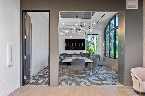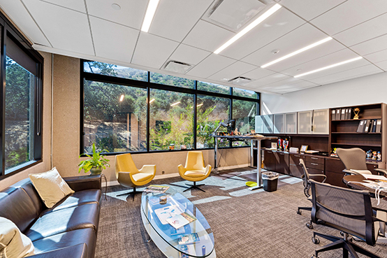 Interior improvements throughout a 12,000 sq. ft. 2nd floor executive office space, for a well respected and long established law firm, in a 3 story concrete tilt-up building located in Westlake Village. Interior improvements consist of new glass Herculite entry doors, custom reception desk, modernized break room and lounge with appliances, coffee bar, two conference rooms, private library with frameless glass walls, 25 new individual offices, open office bullpens, copy room, IT room and file room. All new upgrades throughout the office space include millwork cabinets, granite counter tops, hardwood flooring, vinyl plank and carpet throughout, acoustical ceilings, and Mecho window shades for each of the office storefront window systems.