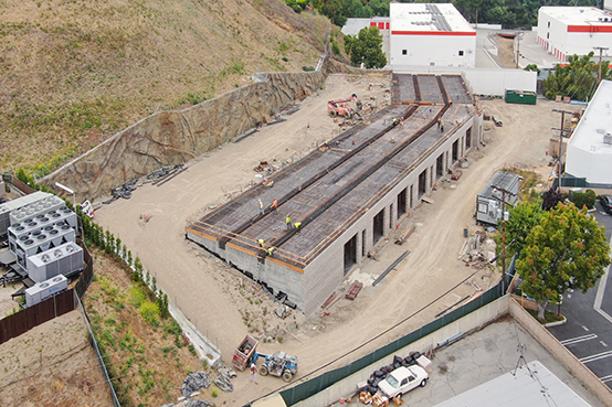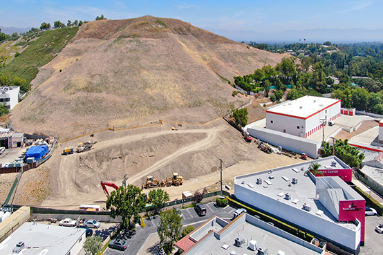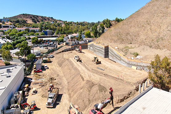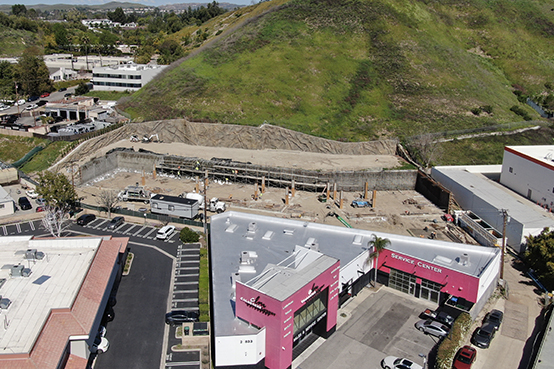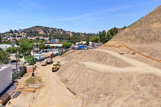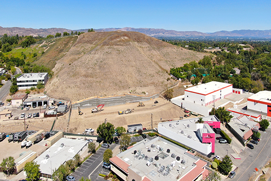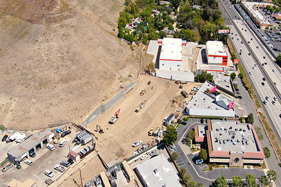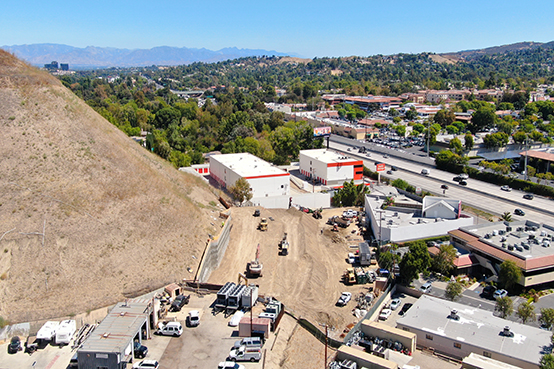 Calabasas Auto Park is an exclusive, exotic and collectable car storage facility. The private auto storage complex is a 31,500 sq.ft. two-story masonry and concrete facility on a 4.6-acre hillside parcel in Calabasas. Attractive contemporary architecture with high ceilings, wide panelized doors, common areas, restrooms and meeting area for its owners. The final result will be 19 individual luxury and collector car condominiums across two levels with glass roll-up doors, and a two-level common area with amenities for club members. Gated and secured with cameras around the property. Extensive site work includes soil nail retaining walls, masonry property line walls, secure access-controlled gate entry, and exquisite landscaping improvements. The landscape and architectural design will blend in with the surrounding hills. |